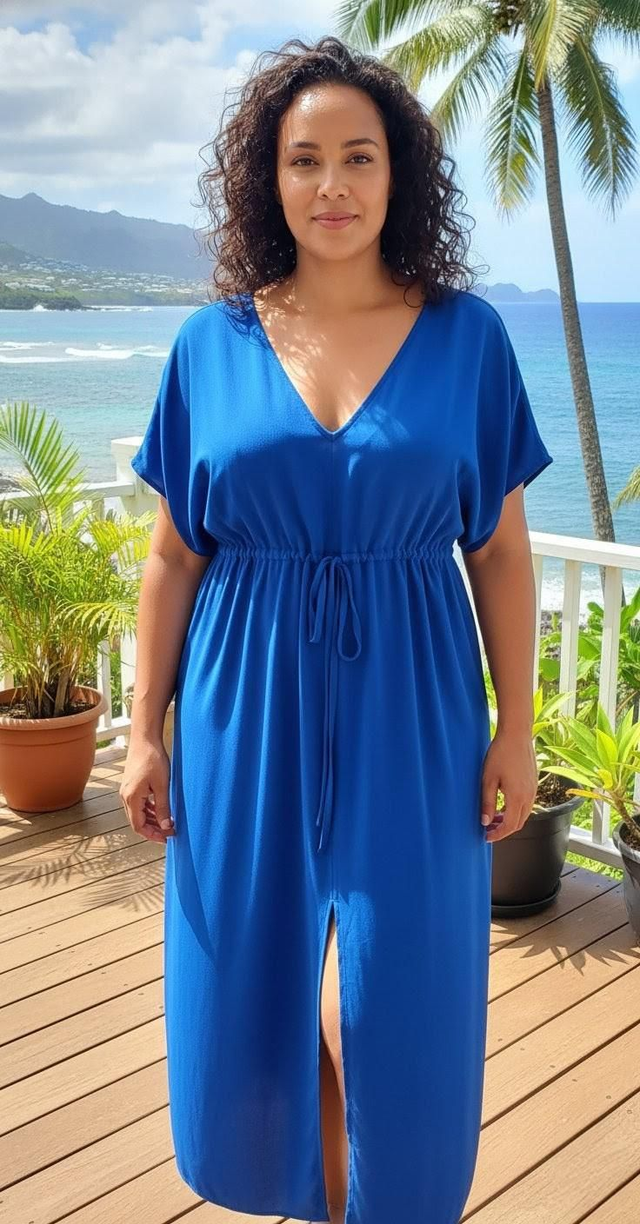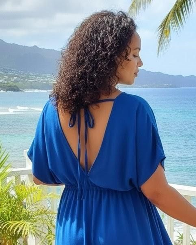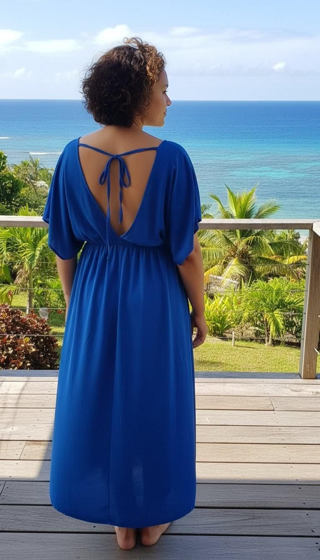 La Robe Sandrine est une pièce unique, confectionnée avec passion et faite main à La Réunion. Elle incarne la douceur de vivre tropicale tout en offrant une silhouette élégante et moderne.