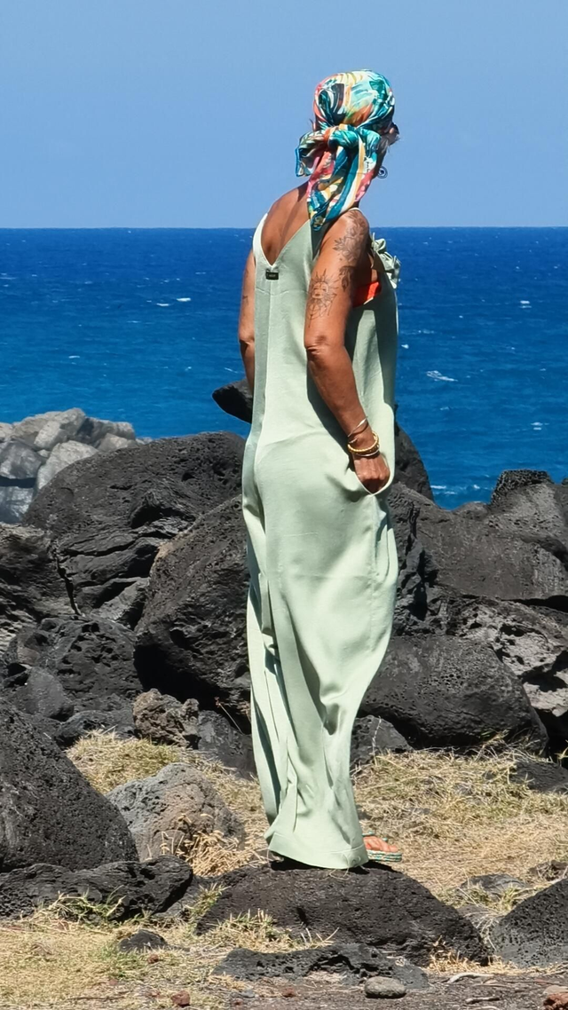 Découvrez l'exclusivité de la combinaison Livia, une pièce unique et entièrement faite main à la Réunion, disponible dans une taille polyvalente S/M.